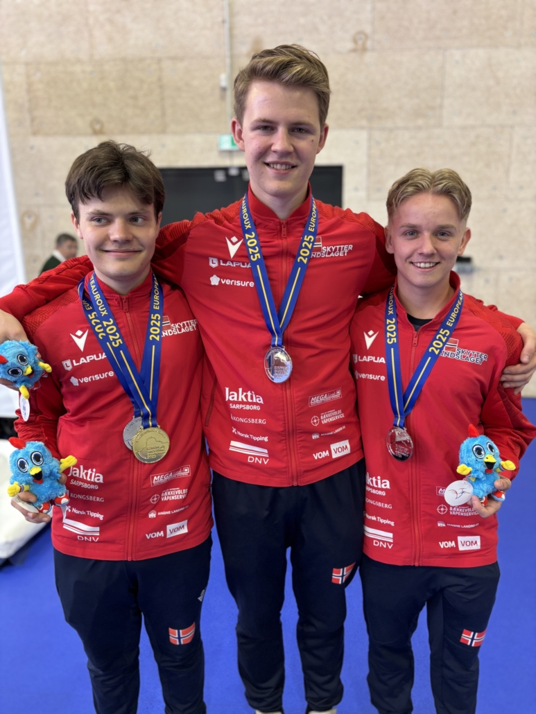 Det ble gull til de norske juniorgutta i øvelsen 50m rifle match trio! I finalen hadde Sebastian Endsjø Johnsen, Even Olai Enger Throndsen og Jens Olsrud Østli full kontroll over motstander Ukraina som tok sølvet.